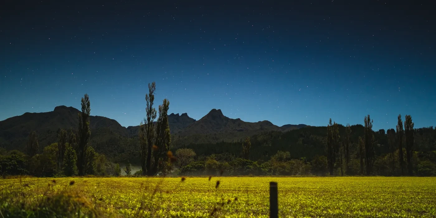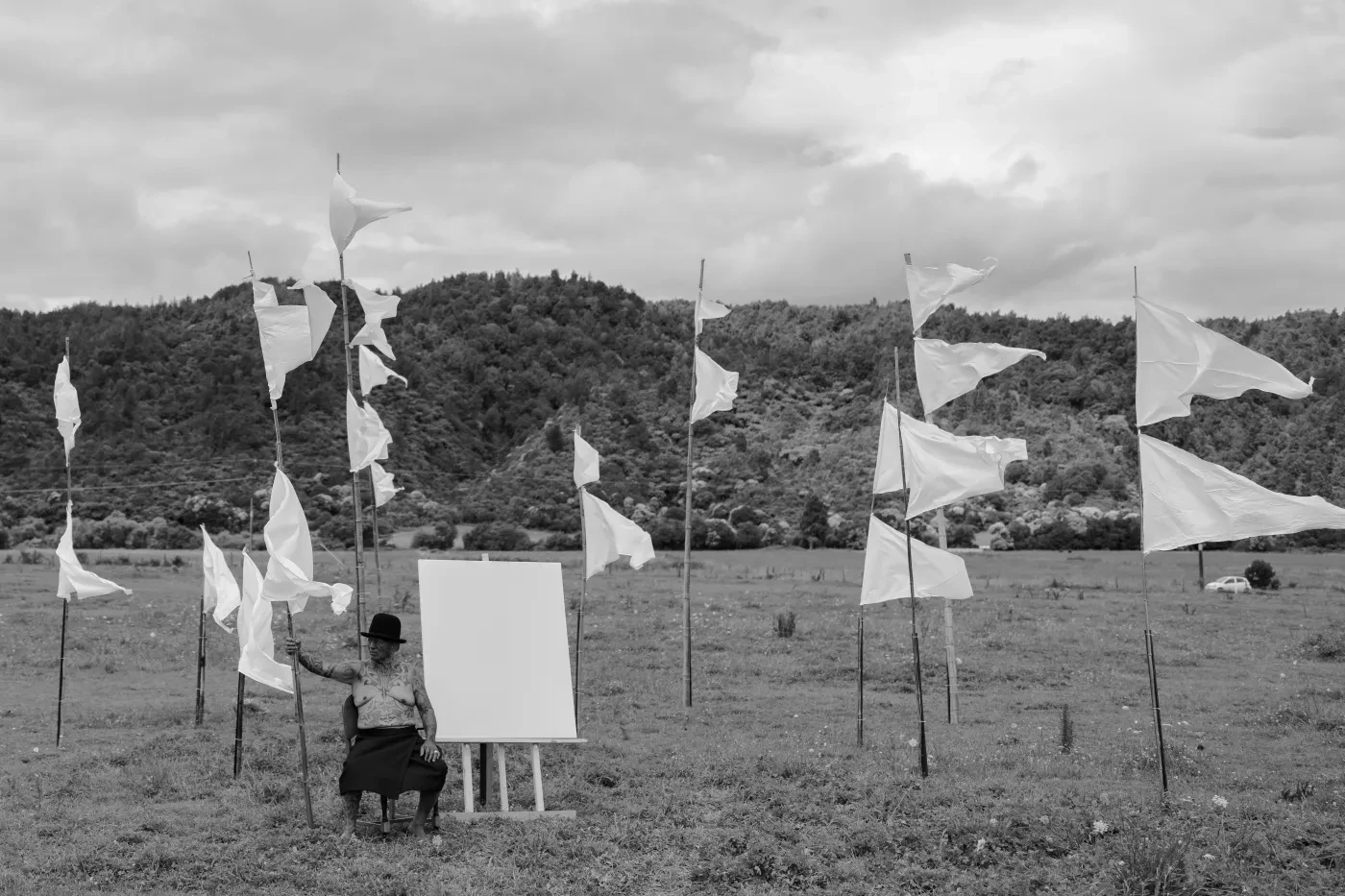 Te Rangimoaho's photography presents Aotearoa as seen through the eyes of a young Māori. He focuses on the natural environment and the visible layers of human intervention, including human-made objects or non-indigenous flora that disrupt the native scenery.