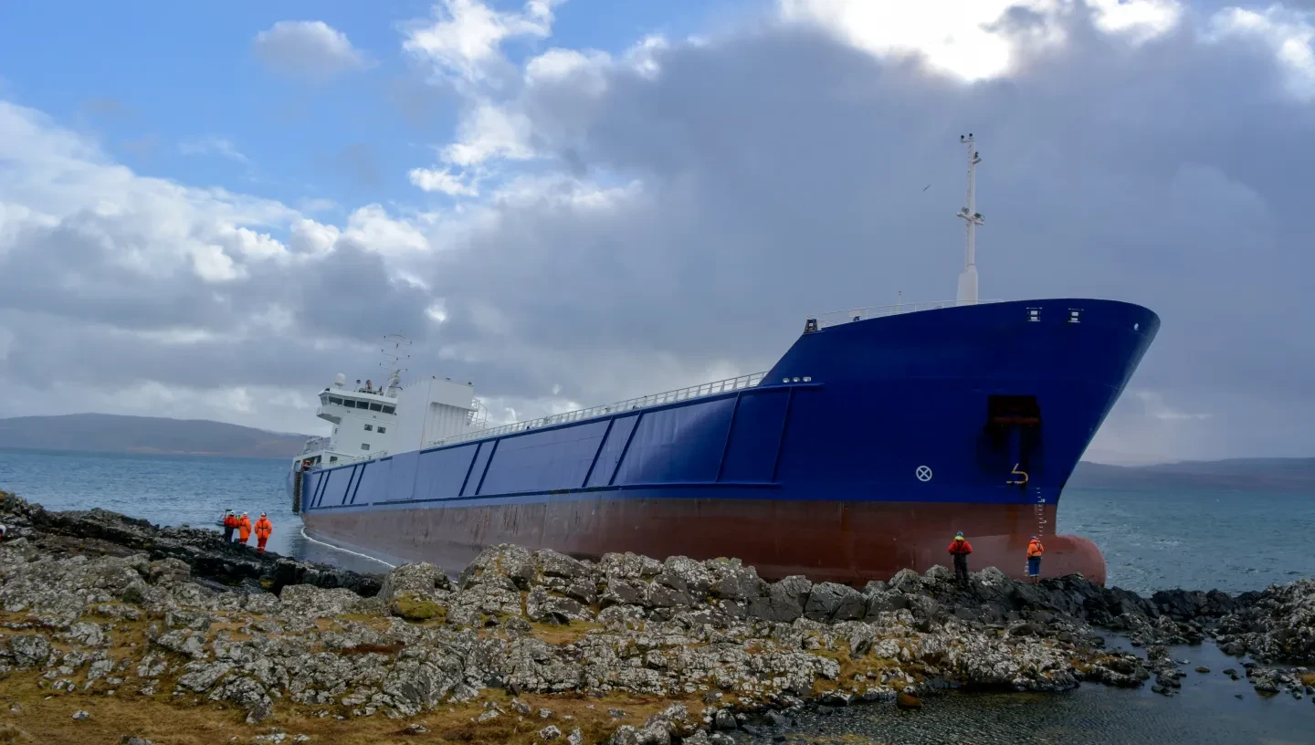 Feature image: The Lysblink Seaways aground off Kilchoan in February 2015 (courtesy of Stephan Hennig)