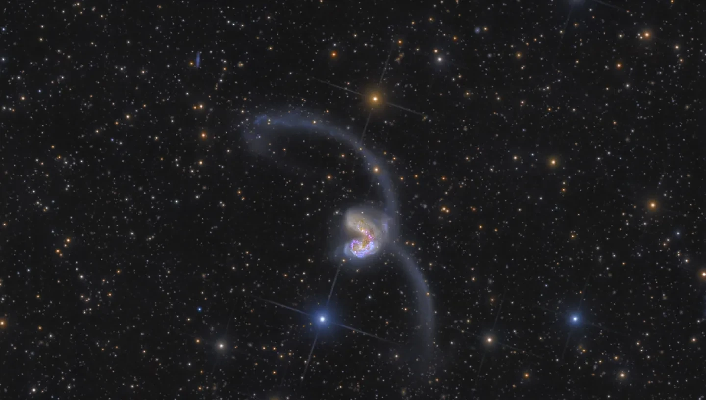 The reason astronomers find this object so fascinating is personal. The Antennae Galaxies show a likely future of the Milky Way and our next-door neighbour, the Andromeda Galaxy, when the two eventually collide. So we may essentially be looking at a slow-motion rehearsal of our own galaxy's fate.
