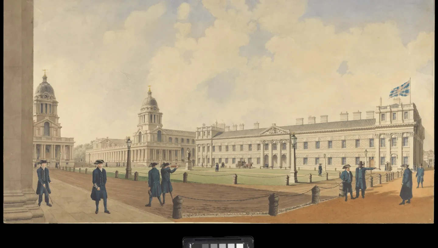 Header image: Greenwich Hospital viewed from the north and showing pensioners, 1830 (PAH9662) © National Maritime Museum, Greenwich.